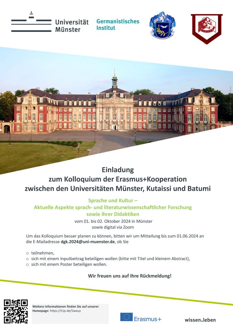 © Internationales Anfang Mai findet an der Staatlichen Akaki-Zereteli-Universität Kutaissi und der Staatlichen Shota Rustaveli Universität Batumi eine Spring School mit dem Titel „In der Sprache geeint - Interkulturelle Begegnung zwischen Georgien und Deutschland“ statt. Das Angebot ist Teil der Strategischen Partnerschaft zwischen den zwei georgischen Universitäten und der Universität Münster, welche seit 2016 unter der Leitung von Dr. Nils Bahlo besteht.