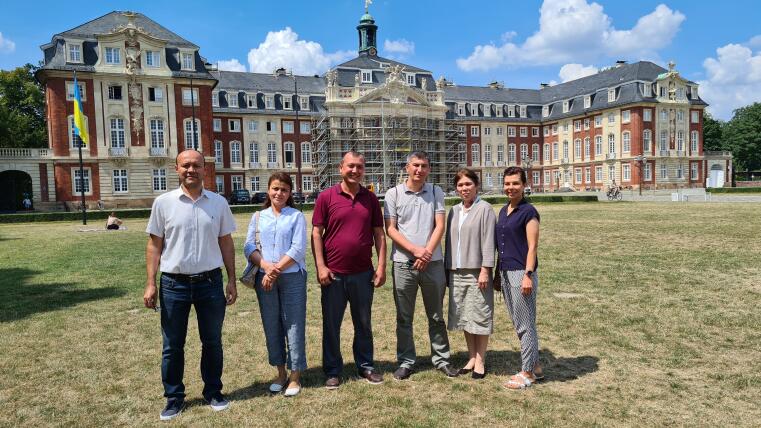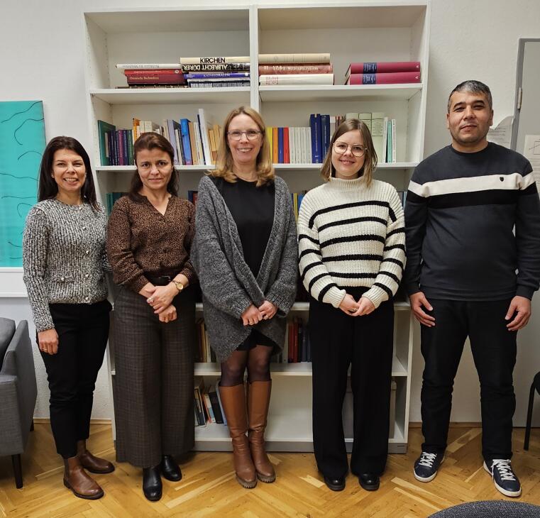 Professorin Silvia Reuvekamp, Gesamtleitung der Partnerschaft Münster-Usbekistan, begrüßt die Gäste aus Termez (oben, links) und aus Nukus (unten, Mitte).© Internationales Im Frühjahr 2025 sind zwei weitere usbekische Hochschulen Teil des deutsch-usbekischen Hochschulnetzwerks geworden. Mit ihrem Beitritt wird die enge Zusammenarbeit in bestehenden Projekten - insbesondere im Bereich der interkulturellen Germanistik und der Förderung der Ausbildung von Deutschlehrkräften - weiter ausgebaut und nachhaltig gestärkt.