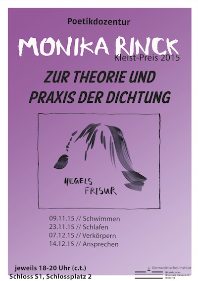 Zum ersten Mal wird im Wintersemester 2015/2016 am Germanistischen Institut der WWU Münster die sogenannte Poetikdozentur besetzt. Dozentin ist die gerade mit dem renommierten Kleist-Preis ausgezeichnete Monika Rinck.