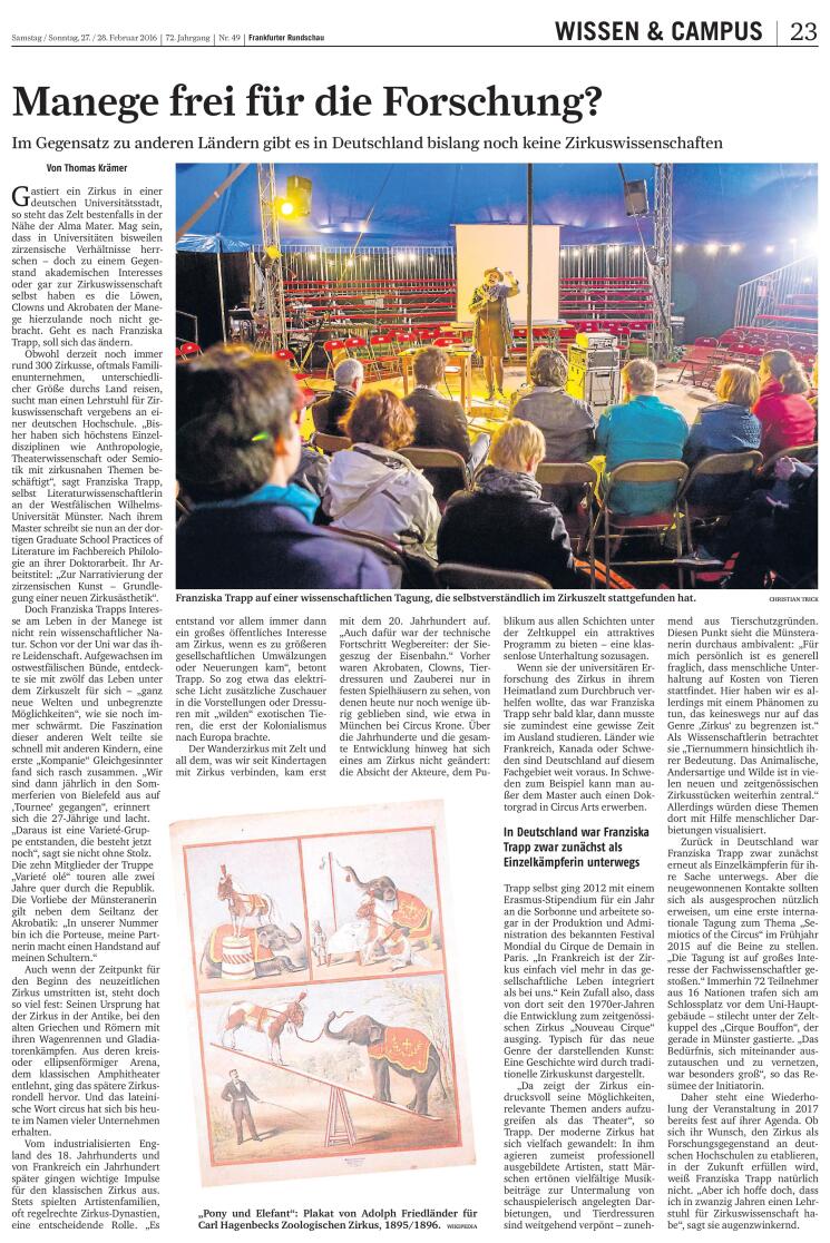 17. April: Franziska Trapp und Moritz Baßler in der WDR Lokalzeit zur Tagung Zirkussemiotik