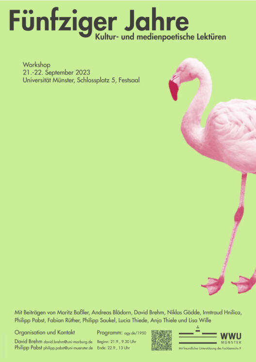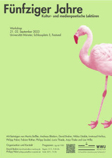 "50er Jahre. Kultur- und medienpoetische Lektüren" Gemeinsame Organisation mit David Brehm, Philipps-Universität Marburg: Workshop im Festsaal der Universität Münster vom 21. bis 22. September 2023. Zum Programm: