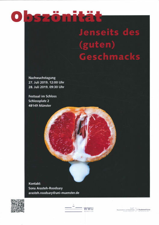 Neben seiner Existenz als Geschmacksurteil ist Obszönität vor allem eine Inszenierungsstrategie. Unter diesem Aspekt, anknüpfend an den Themenkomplex 1), soll hauptsächlich untersucht werden, wie Obszönität in verschiedenen Medien und Kontexten inszeniert wird. Leitende Fragestellung ist, ob es über verschiedene Themen, Medien und Diskurse hinweg identifizierbare Strategien gibt, Obszönität zu inszenieren.