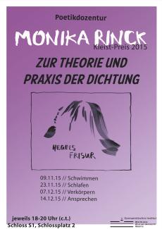 Die renommierte Lyrikerin und diesjährige Kleist-Preis-Trägerin Monika Rinck tritt im November die erste Münstersche Poetikdozentur an. Die publikumswirksame Performerin hält vier öffentliche Vorlesungen „Zur Theorie und Praxis der Dichtung“, auf einer „Lyrik Late Night“ trägt sie aus ihren Werken vor. Präsentiert wird die Dozentur vom Germanistischen Institut der Westfälischen Wilhelms-Universität Münster (WWU).
