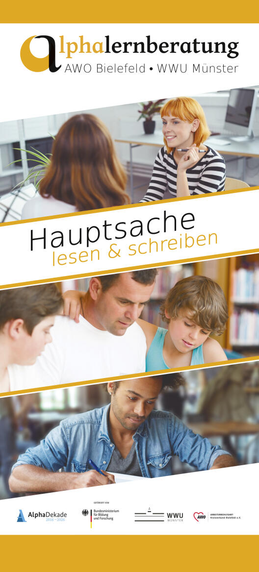 Postkarten, um auf Angebot der Alphalernberatung aufmerksam zu machen (erstellt in Zusammen-