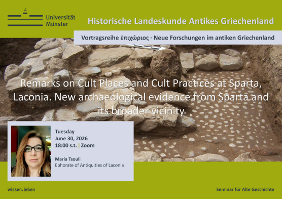 Im Seminar für Alte Geschichte/Institut für Epigraphik, im Fachbereich 08 der Universität Münster, ist zum 01.10.2026 die Stelle als Lehrkraft für besondere Aufgaben (E 13 TV-L) mit einer Laufzeit von 24 Monaten zu besetzen. Weitere Informationen entnehmen Sie bitte der Stellenausschreibung.