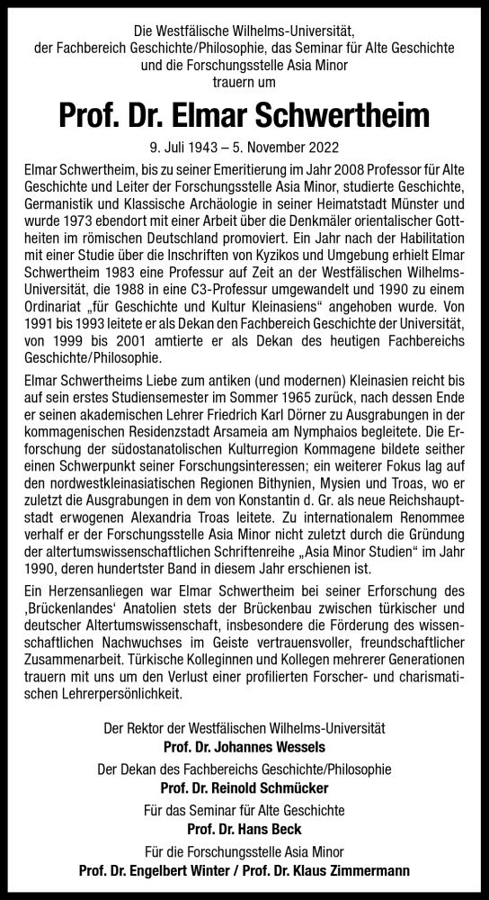 - Prof. Dr. Elmar Schwertheim (†)