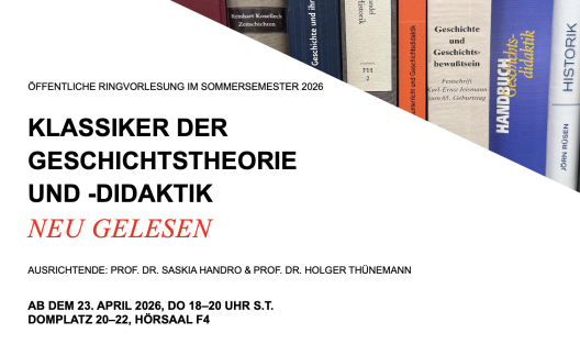 In dieser Ringvorlesung werden zentrale Werke der Geschichtsdidaktik kritisch und fundiert beleuchtet. Renommierte Referent:innen ordnen die Texte in ihren historischen Entstehungskontext ein, zeichnen ihre Rezeptionsgeschichte nach und diskutieren ihre forschungs- und praxisbezogene Aktualität. Dabei werden auch der Begriff des ‚Klassikers‘ sowie das Konzept eines ‚Kanons‘ reflektiert.
