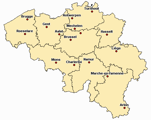 5. Teken zelf de taalgrens tussen het Nederlandse, het Duitse, het Franse en het tweetalige taalgebied in België: