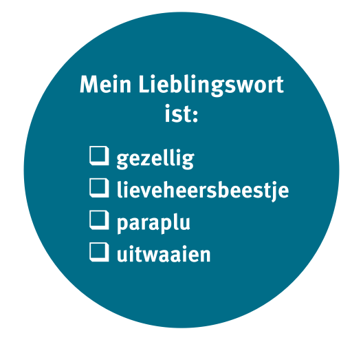 Anlässlich des 25-jährigen Jubiläums des Hauses der Niederlande haben wir versucht, den Reichtum der niederländischen Sprache einzufangen und dafür mit Hilfe von zwei Mini-Umfragen Lieblingswörter aus unserer Nachbarsprache gesammelt: wohlklingende, kuriose oder lustige Begriffe, Wörter, die in ihrer Art einzigartig sind oder auch Wörter, die eine besondere Bedeutug haben für die Umfrageteilnehmer:innen.
