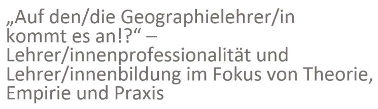 Während des HGD-Symposiums am 04./05.10.2018 soll auf der Basis von Theorie, Empirie und Erfahrung zum einen der Frage nachgegangen werden, welche Kompetenzen Geographielehrer/innen für die professionelle Ausübung ihres Berufs benötigen, und zum anderen, welche Konzepte sich im Rahmen fachspezifischer Professionalisierungsprozesse in den verschiedenen Phasen der Lehrer/innenbildung bisher bewährt haben.