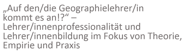 Lehrer/innenprofessionalität und Lehrer/innenbildung sind seit jeher genuine Gegenstände fachdidaktischer Forschung und Lehre. Wenngleich die Lehrperson als abhängige und unabhängige Variable in zahlreichen geographiedidaktischen Untersuchungen Berücksichtigung findet und erprobte Konzepte zu ausgewählten fachspezifischen Herausforderungen der Lehrer/innenbildung vorliegen, gab es im Hochschulverband für Geographiedidaktik bislang kein Symposium, das die Geographielehrperson explizit in den Fokus rückt.