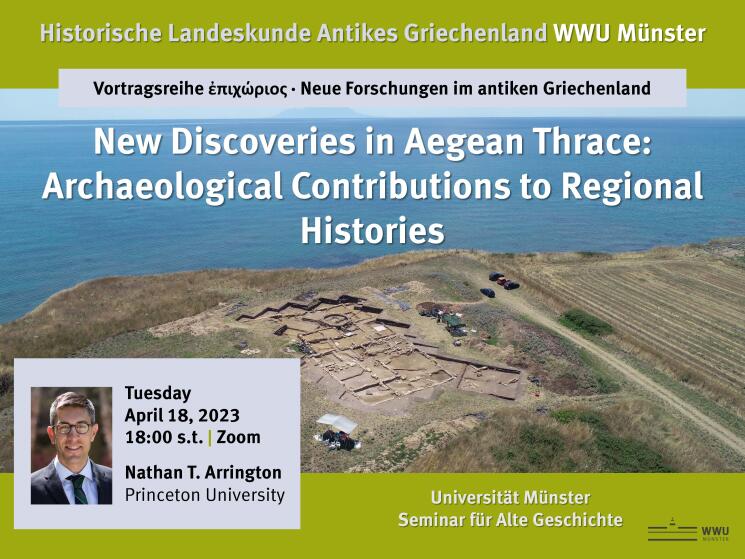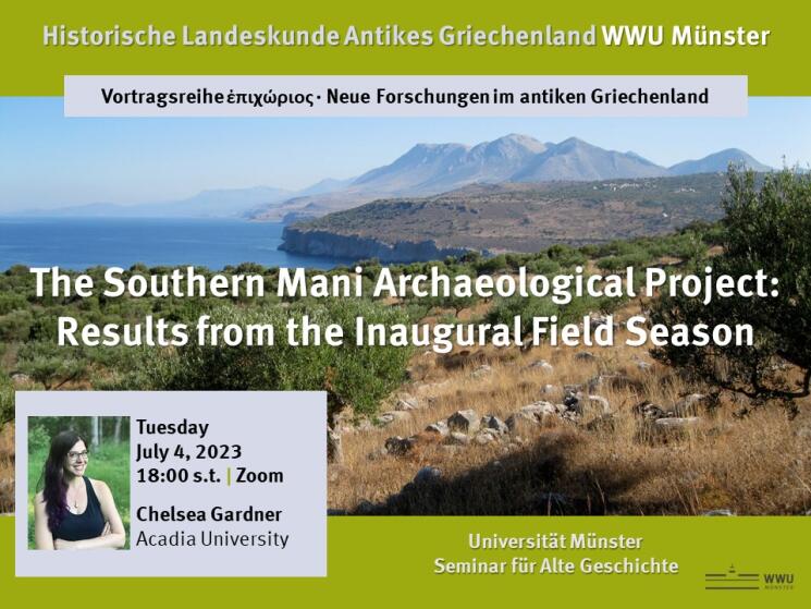 The Arbeitsstelle is running a lecture series about ongoing field work in ancient Greece: ΕΠΙΧΩΡΙΟΣ New Research in Ancient Greece. Focused on the axis of new archaeological discoveries and their local and topographical contexts, the series features scholars from a diverse international background, united by their experience on the ground. Lectures are delivered in a carbon footprint-friendly manner via zoom and are open to audiences at WWU and beyond.