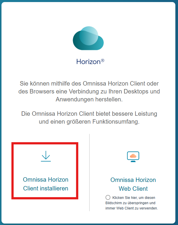 Service: With Omnissa Horizon, you can access your virtual desktop from anywhere. You can either install the Horizon Client or access your desktop from your browser using Horizon HTML Access. We recommend accessing via Horizon Client as this is the more stable and convenient option.