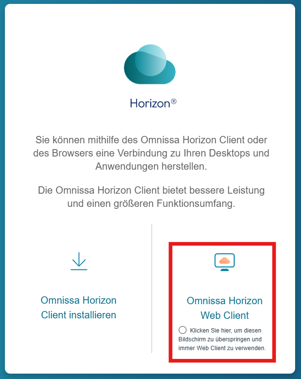 Virtual Desktop (VDI): Access via Omnissa Horizon