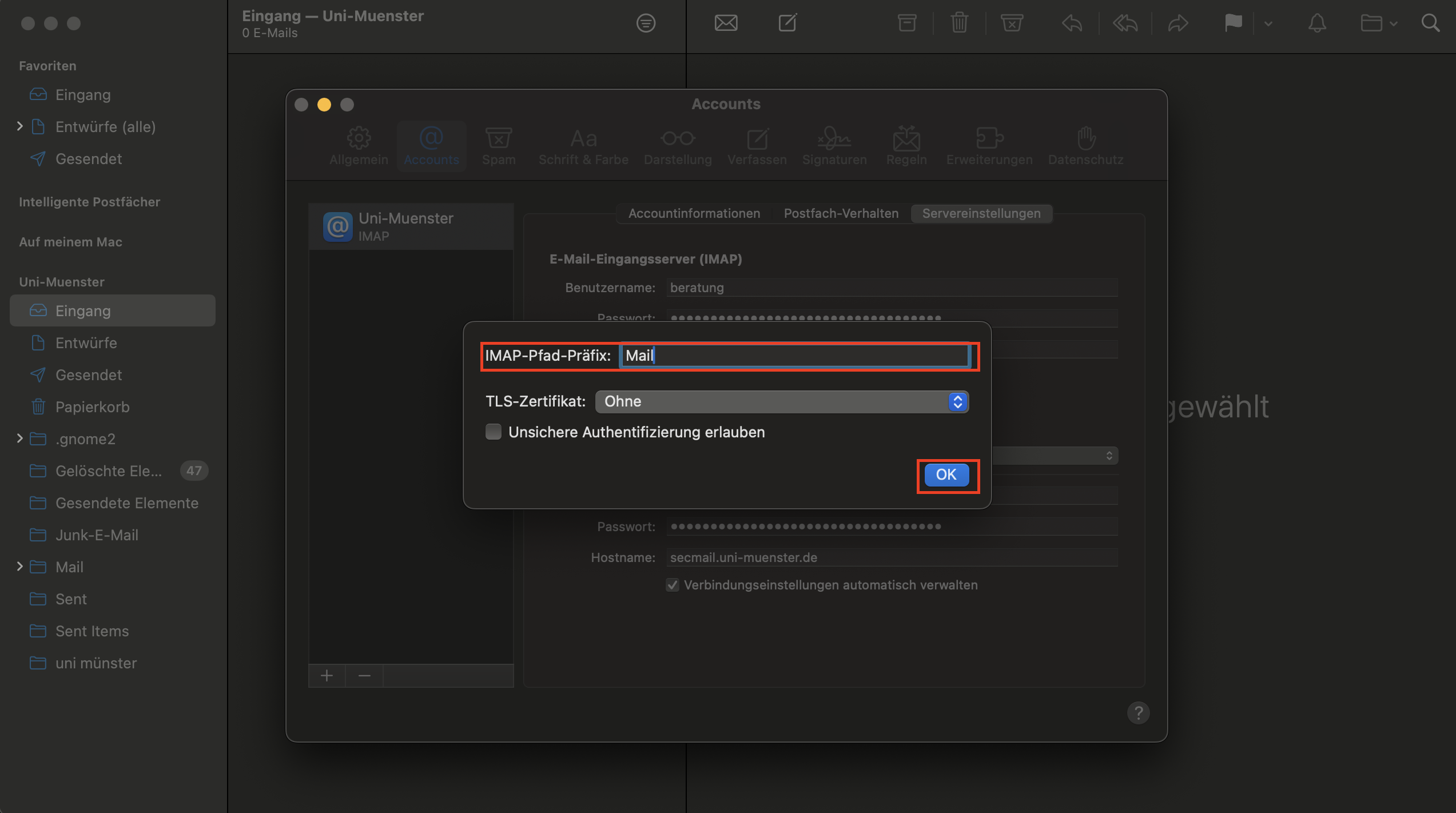 Integrating the University E-Mail Account in macOS