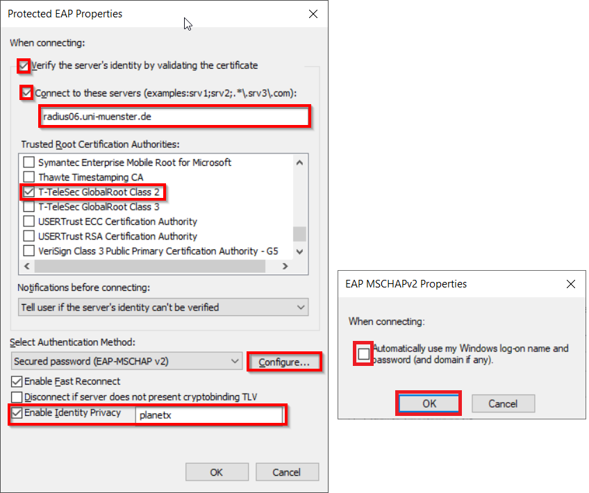 - Connect to these servers: radius06.uni-muenster.de