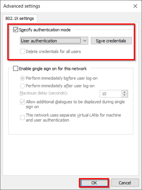 - Enable IEEE 802.1X authentication: Tick