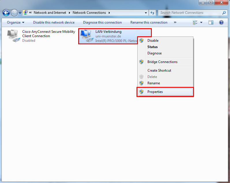Restart your PC without a network connection. Afterwards, connect your PC with pLANet.X. You may be asked to enter your user credentials again. Please enter your university e-mail address YourUniversity-ID@uni-muenster.de and your password for network access.