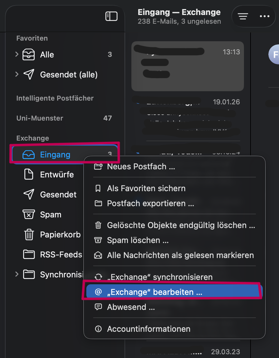 Einrichtung des Exchange-Kontos in MacOS Mail