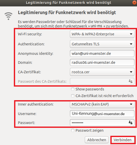 Bestätigen Sie Ihre Eingaben mit Klick auf "Verbinden".© CIT B. Ubuntu 20.04