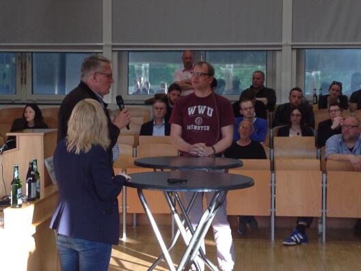 Anlässlich der NRW-Landtagswahlen öffnete am Wahlsonntag der Hörsaal SCH2 am Institut für Politikwissenschaft am 15. Mai wieder seine Pforten und bot vielen Studierenden und anderen Politik-Interessierten die Möglichkeit, die Ergebnisse der Landtagswahlen gemeinsam live zu verfolgen.