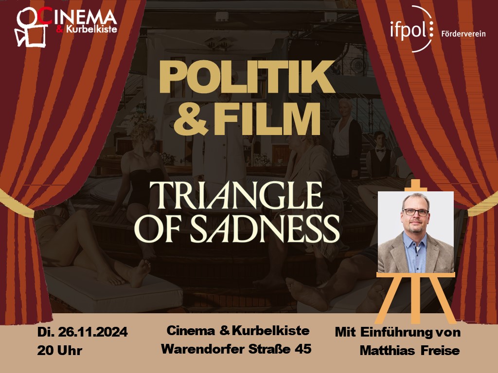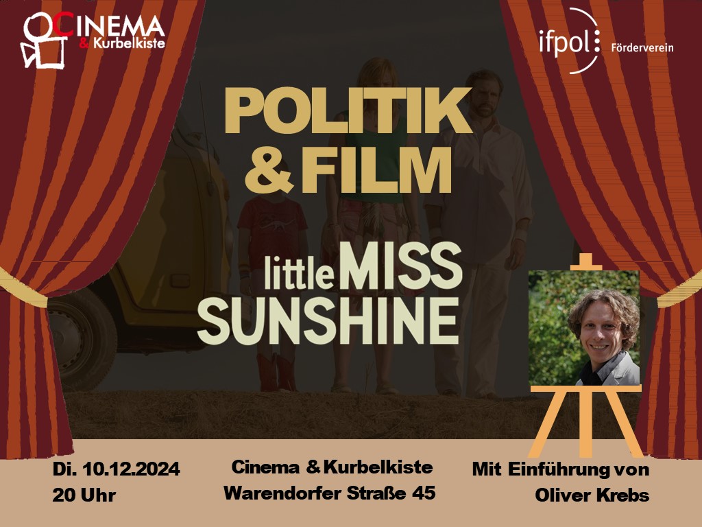 Auch im Wintersemester 2024/2025 setzen der Förderverein zusammen mit dem Programmkino Cinema an der Warendorfer Straße die beliebte Filmreihe „Politik & Film“ fort. Über den Zeitraum von fünf Abenden hinweg werden Dozierende des Instituts ausgewählte Filme in kurzen Vorträgen von etwa einer halben Stunde vorstellen. Das Augenmerk liegt darauf, wie diese Filme aus einer politikwissenschaftlichen Sichtweise interpretiert werden können, wobei das Politische oft erst auf den zweiten Blick erkennbar wird. Das vielfältige Programm bietet Beiträge aus unterschiedlichen filmischen Epochen und kombiniert diese mit teils unerwarteten filmischen Werken.