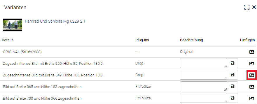 If you just want to insert the standard variant of an image, you can double-click on the preview image.