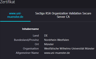 - Sollte hier z. B. "uni-meunster.de" oder "uni-muenster.cf" oder "uni-muenster.de.webhost.xyz" anstatt "uni-muenster.de" stehen, handelt es sich sehr wahrscheinlich um eine betrügerische Webseite.
