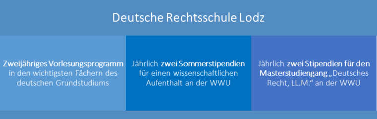 - two scholarships per year for participants of the German Law School in Lodz to pursue the “German Law, LL.M.” master’s program at the University of Münster.