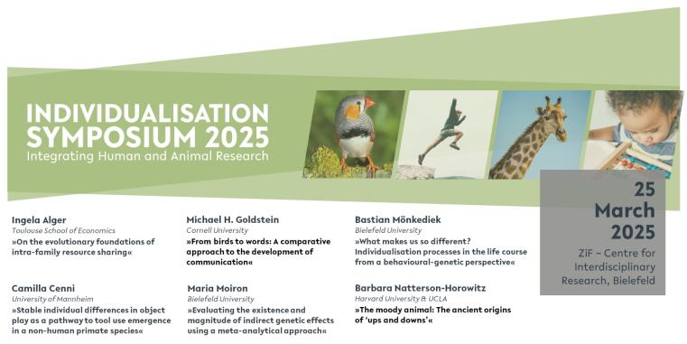 Das Joint Institute for Individualisation in a Changing Environment (JICE), das Verbundprojekt InChangE und der Transregio-Sonderforschungsbereich 212 lud alle interessierten Personen herzlich ein zur vierten Ausgabe des interdisziplinären Individualisation Symposiums im Zentrum für interdisziplinäre Forschung (ZiF) der Universität Bielefeld am Dienstag, 25. März 2025.