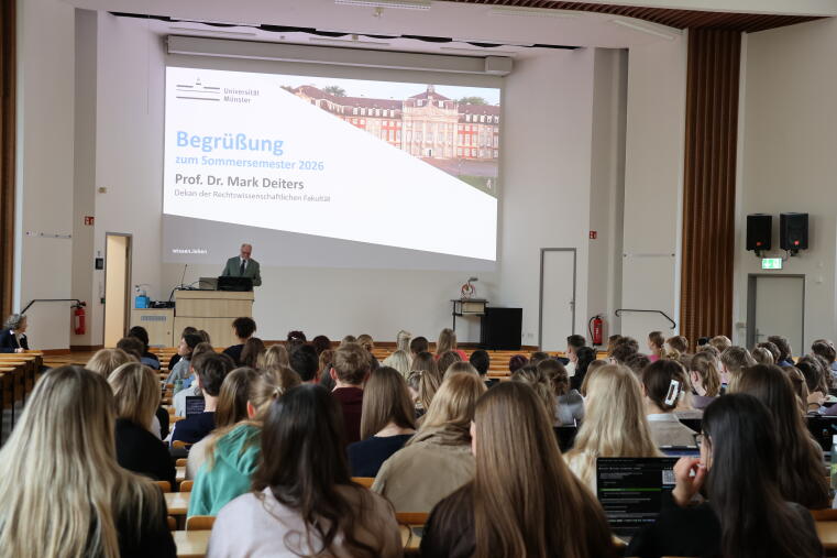 Zum Auftakt des neuen Semesters hieß der Dekan, Prof. Dr. Mark Deiters, die Erstsemesterstudierenden an der Rechtswissenschaftliche Fakultät herzlich willkommen. Er begrüßte auch jene Studierenden, die bereits im vergangenen Wintersemester im Rahmen des Bachelorstudiums Politik/Wirtschaft und Recht ihr Studium aufgenommen haben und damit gewissermaßen schon zu den „alten Hasen“ zählen.