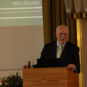 Der Einladung des Dekans der Rechtswissenschaftlichen Fakultät folgten rund 400 Gäste und kamen am Nachmittag in der Aula des Schlosses zusammen. Der Dekan Prof. Dr. Janbernd Oebbecke begrüßte die Examensabsolventen und -absolventinnen, die frisch gebackenen Doktoren und Doktorinnen, ihre Gäste, die Redner sowie die Fachschaft, die das Dekanat bei der Organisation der ersten Absolventenfeier tatkräftig unterstützt hatte. Dass erstmals Examinierte und Doktorinnen und Doktoren gemeinsam geehrt werden, liegt daran, dass nun jedes Semester eine Absolventenfeier stattfinden soll, damit der Zeitpunkt des erfolgreichen Abschlusses nicht allzu weit in der Ferne liegt. Der Dekan richtete außerdem ein paar Worte an die Absolventinnen: Obwohl die Anzahl der weiblichen Absolventinnen sich mit den männlichen Absolventen die Waage hält, sehe es bei den Promotionen leider anders aus. Einen Grund hierfür gebe es nicht. Deswegen sollten vor allem die anwesenden Absolventinnen darüber nachdenken, die Promotion als möglichen nächsten Schritt ins Auge zu fassen. Nach ein paar organisatorischen Hinweisen übergab er das Wort an Dr. Jutta Laws, Vorsitzende des Justizprüfungsamtes Hamm sowie Vorsitzende Richterin und zugleich Güterichterin am OLG Hamm.