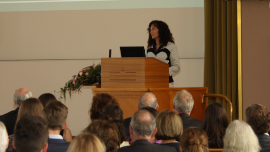 Dr. Laws gratulierte den Examinierten. Zwei Themen seien ihr am Morgen beim Zeitunglesen ins Auge gesprungen, die sie für ihr Grußwort nutzen wollte: Die Aufruhr darüber, dass die Englischklausur in den diesjährigen nordrhein-westfälischen Abiturprüfungen zu schwierig gewesen sein soll, vergegenwärtigte ihr, dass die erste juristische Prüfung eine der schwierigsten Hochschulabschlussprüfungen sei. Die Frage darauf, ob dies so sein müsse, beantwortete sie mit einem klaren „Ja“. . Nur so sei gewährleistet, dass die Absolventinnen und Absolventen ausreichend auf das spätere Berufsleben vorbereitet seien. Die Werbung für eine juristische Karrieremesse war für sie Anlass genug, Werbung für den Richterberuf zu werben. So gab sie einen Einblick in ihren persönlichen Karriereweg in der Justiz. Sie fing als Richterin am Amtsgericht an, wechselte dann zum Landgericht und sodann zum Oberlandesgericht. Mittlerweile ist sie dort Vorsitzende Richterin sowie Vorsitzende des Justizprüfungsamtes in Hamm – und nicht zu vergessen Mutter zweier mittlerweile erwachsener Söhne. Sie merkte an, dass ihre vorübergehende Teilzeitbeschäftigung ihrer Karriere nicht geschadet habe.