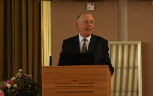 Die Festrede hielt in diesem Jahr der Rechtsanwalt und Staatssekretär a.D. Herr Prof. Dr. Alexander Schink, in diesem Jahr Silberdoktor der Fakultät. Er berichtete über die Methoden der Beteiligung der Öffentlichkeit bei Vorhaben von Behörden am Beispiel des Planfeststellungsverfahrens für die Rheinbrücke, die meist befahrene Brücke in Europa. Er skizzierte den Zweck der Beteiligung: Zusammengefasst soll die Beteiligung bei den betroffenen Bürgern Akzeptanz für das Vorhaben schaffen – nach dem Motto „Kungelei gibt es in Köln, aber nicht anderswo“. So diene die Beteiligung insbesondere dazu, frühzeitig herauszufinden, welches Vorhaben in welchem Ausmaß welche Auswirkungen für die Bürger habe, um sodann die „richtige“ Entscheidung zu treffen. Denn eines sei laut Prof. Dr. Schink sicher: Der richtige Protest kommt erst dann, wenn die Bagger vorfahren.