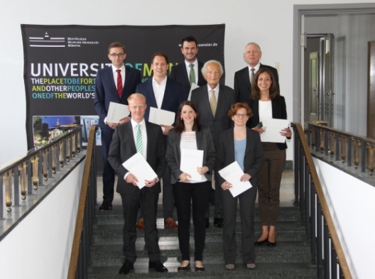 Im Anschluss an die Festrede wurden zunächst die Examinierten des Wintersemesters 2016/17 durch Prof. Dr. Oebbecke, Joy Dahmen sowie Peter Dümpelmann von der Deutschen Anwalt- und Notar-Versicherung (DANV) geehrt. Insgesamt haben 237 Studierende aus Münster im Wintersemester 2016/17 die erste juristische Prüfung bestanden.
