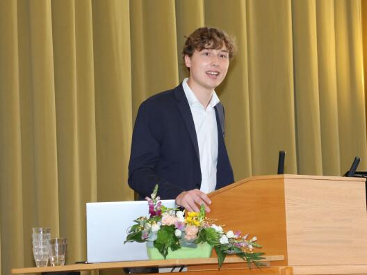 Im Anschluss sprach Christian Hovestadt, der Vorsitzende der Fachschaft Jura. Er warf einen Blick auf die nun vergangene Studienzeit der Absolventinnen und Absolventen. Von der O-Woche und dem Kauf des ersten Fahrrads, bis zum Überstunden machen im RWS in der Examensvorbereitung. Dabei hätten die Absolventinnen und Absolventen einer wahren Belastungsprobe Stand gehalten, bei der sie Selbstständigkeit und Resilienz gelernt, aber ebenso Freunde fürs Leben gefunden hätten.