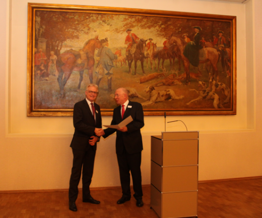 Nachdem Prof. Dr. Oebbecke die Urkunden überreicht hatte, nahm der Abend seinen weiteren Verlauf und die Gäste widmeten sich erneut ihren lockeren Gesprächen beim Dessert.