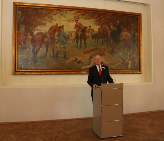 Prof. Dr. Oebbecke erzählte mit Bedauern, welche Kollegen die Fakultät verlassen, und freute sich, neue Kollegen vorzustellen. Weitere erfreuliche Ereignisse waren die guten Examensnoten der Münsteraner Studierenden, die Auszeichnung von Prof. Dr. Peter Oestmanns Buch als eines der „Juristischen Bücher des Jahres“ sowie die Ernennung von Prof. Dr. Sabine Schlacke zur Vorsitzenden des Wissenschaftlichen Beirats der Bundesregierung Globale Umweltveränderungen (WBGU). Prof. Dr. Oebbecke erwähnte weiterhin den neuen Web-Auftritt der Fakultät und dankte allen Mitwirkenden. Weniger erfreulich sei allerdings die prozedurale Erschwerung der Personalgewinnung. Abschließend stellte der Dekan Dr. Dörte Diemert vor, die in diesem Jahr die Dinner Speech hielt.