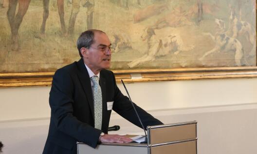 In seinem Grußwort berichtete er anekdotisch aus seiner bereits einjährigen Tätigkeit als Dekan. So zog er Beispiele aus Forschung, Lehre, den internationalen Beziehungen der Universität und der Abnahme der ersten juristischen Prüfung heran, um zu verdeutlichen, wie die Bürokratie manch einen Vorgang verlangsamt oder unnötig verkompliziert. Hier seien exemplarisch nur die Schlüssel im Juridicum, die plötzlich nicht mehr für die Toiletten und eigenen Büroräume passen oder die unzähligen Formulare genannt, die man benötigt, um eine einzige Ausgabe abzurechnen.