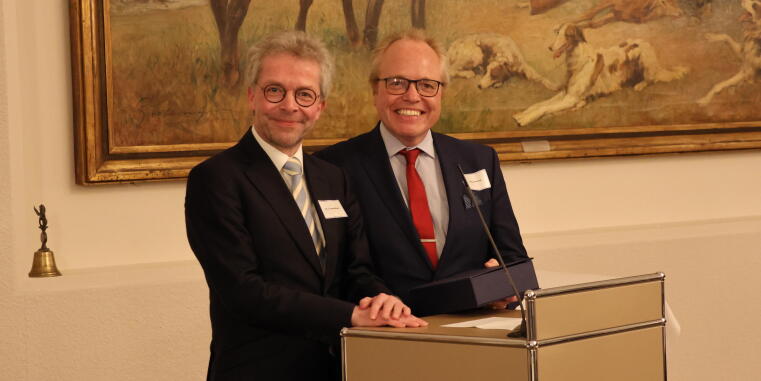 Los ging es mit einem Sektempfang. In lockerer Atmosphäre fand schnell ein reger Austausch unter den Kollegen und Kolleginnen statt. Gegen 19.30 Uhr begrüßte der Dekan Prof. Dr. Peter Oestmann die rund einhundert Gäste.