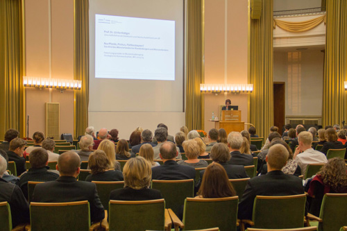 Prof. Dr. Jutta Röser, stellvertretende Institutsdirektorin, überreichte den IfK-AbsolventInnen bei der Abendveranstaltung in der Aula die obligatorische Gerbera zum Abschied. Vorträge von MedienAlumni Münster e.V. sowie von M.A.- und B.A.-AbsolventInnen füllten das musikalisch begleitete Programm, dem ein Umtrunk mit den Gästen und IfK-MitarbeiterInnen im Foyer des Schlosses folgte. Es war ein erfolgreicher Abschluss für die IfK-Studierenden, denen das Institut für Kommunikationswissenschaft alles Gute wünscht.