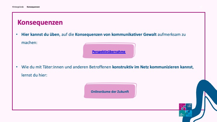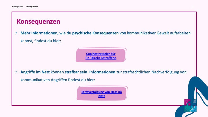 3) Informationen zu den Hintergründen und Konsequenzen von kommunikativer Gewalt.