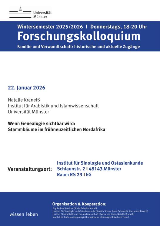Forschungsprojekt des Instituts für Kulturanthropologie/Europäische Ethnologie, in Kooperation mit dem LWL-Museum für Naturkunde in Münster, dem Verein für Computergenealogie e.V. und der Westfälischen Gesellschaft für Genealogie und Familienforschung e.V., Leitung: Prof. Dr. Elisabeth Timm, 07/2025 bis 06/2027.