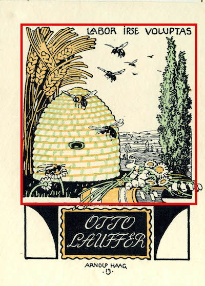 Das dominierende Symbol im Lauffer-Exlibris, das Bienenkorbmotiv, ist Ausdruck von Lauffers Denken in ständischen Gesellschaftsordnungen. Mit seiner klar geregelten Hierarchie gilt der Bienenstamm seit der Antike als ideale Form der Gemeinschaft, die vielfältige Artikulationen zwischen Biologie und Gesellschaftsbeschreibung gefunden hat. [25]