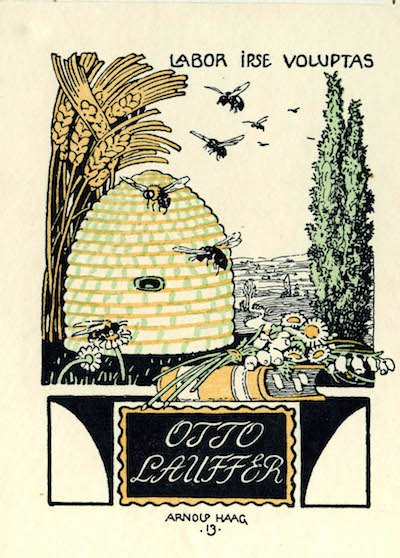 Exlibris Otto Lauffer, 1913, Lithographie, coloriert, signiert: Arnold Haag 13, 12 x 9 cm