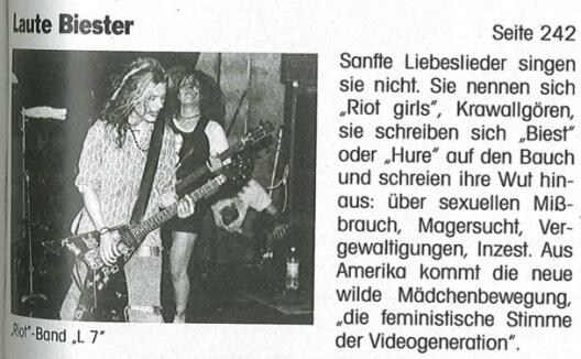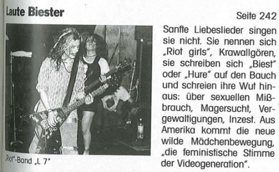 So auch im deutschsprachigen Raum, wo im Herbst 1992 der wohl erste Artikel in der bürgerlichen Presse erscheint, und zwar im Spiegel – Titel: „Revolution auf Mädchenart“.[6]