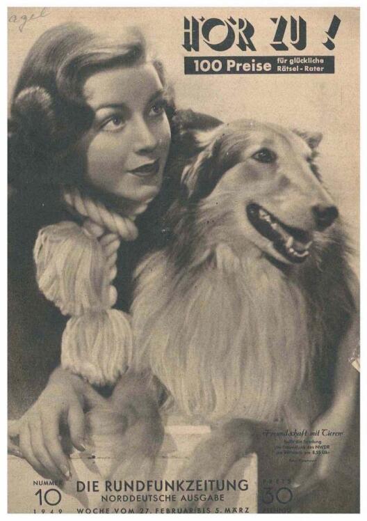 „Freundschaft mit Tieren“ heißt ein Beitrag in der Reihe „Du und Deine Kinder“ im Frauenfunk des NWDR vom Mittwoch, den 02. März 1949. Obwohl die Sendung nur rund fünf Minuten umfasst (8.55 bis 9.00 Uhr), weist das Frontblatt der größten Rundfunkzeitung nach dem Zweiten Weltkrieg extra mit einem Foto auf den Programmtipp hin.