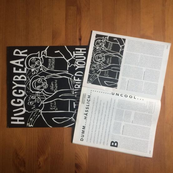 Diese Körper bleiben im Spex-Beitrag angenehm unsichtbar. Zur Illustration des Beitrags dient – ohne entsprechenden Credit – lediglich ein Ausschnitt aus dem Coverbild der Split-12“, die die britische Riot-Grrrl-Band Huggy Bear 1993 gemeinsam mit Bikini Kill veröffentlicht hat. Zu sehen ist eine einfache Schwarz-Weiß-Zeichnung dreier Frauen in Fantasie-Band-Shirts – so weit, so unspektakulär.