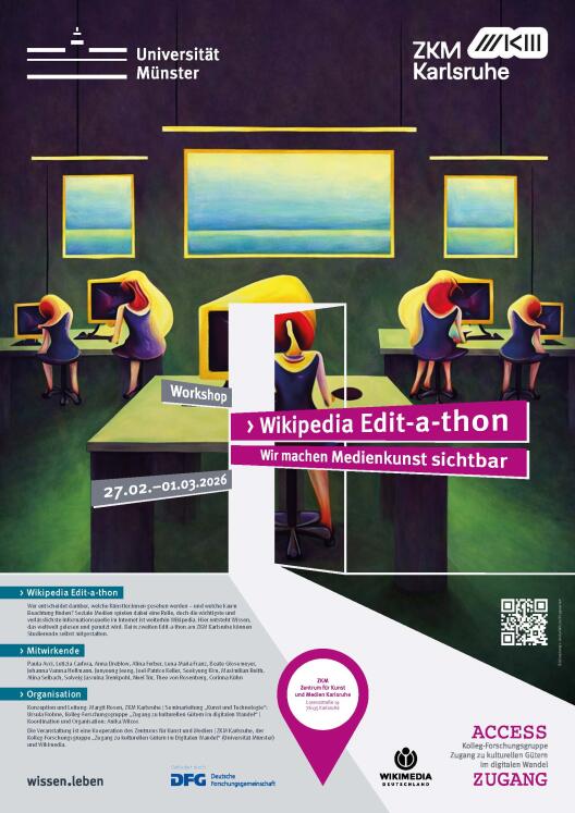 Wer entscheidet darüber, welche Künstler:innen gesehen werden – und welche kaum Beachtung finden? Soziale Medien spielen dabei eine Rolle, doch die wichtigste und verlässlichste Informationsquelle im Internet ist weiterhin Wikipedia. Hier entsteht Wissen, das weltweit gelesen und genutzt wird. Beim zweiten Edit-a-thon am ZKM Karlsruhe können Studierende selbst mitgestalten und dabei helfen, Medienkünstler:innen online mehr Sichtbarkeit zu verschaffen. Wikipedia ist für viele Menschen der erste Ort, an dem sie sich über Kunst und Künstler:innen informieren. Ziel des Edit-a-thons ist es, Wikipedia-Artikel zu Medienkünstler:innen aus der Sammlungsausstellung „The Story That Never Ends“ zu schreiben, zu ergänzen oder zu verbessern. Die Veranstaltung knüpft an das Projekt Medienkunst auf Wikipedia an, in dessen Rahmen bereits zahlreiche Einträge neu erstellt oder erweitert wurden. Auf dieser Grundlage wird die gemeinsame Arbeit fortgesetzt. Der Edit-a-thon bietet den Teilnehmer:innen die Möglichkeit, aktiv an Wikipedia mitzuschreiben und zugleich mehr über den Aufbau der Online-Enzyklopädie zu lernen. Die Teilnehmer:innen erhalten eine Einführung in das Schreiben von biografischen Artikeln und Werkbeschreibungen und lernen, wie Wikipedia als Werkzeug für Recherche und Wissensvermittlung genutzt werden kann. Während der gesamten Veranstaltung werden die Teilnehmer:innen von erfahrenen Wikipedia-Autor:innen und Mitarbeiter:innen des ZKM technisch und inhaltlich begleitet.