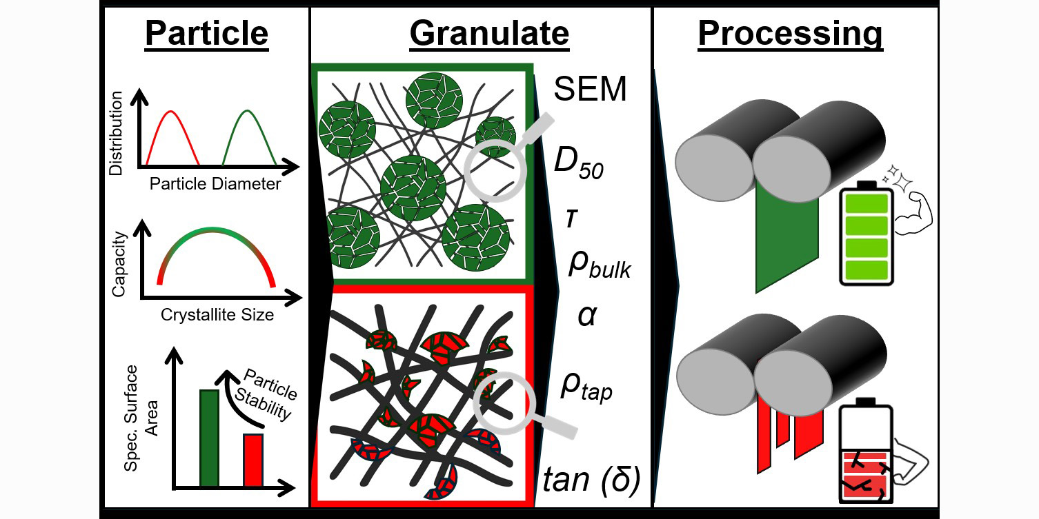 Ein Team des MEET Batterieforschungszentrums hat fünf verschiedene Lithium-Eisenphosphat-Pulver (LFP) analysiert. Im Fokus der Forschung standen die intrinsischen Eigenschaften der Materialien und ihre Eignung für die Trockenprozessierung sowie ihr Einfluss auf die Zellperformanz. Mehr lesen